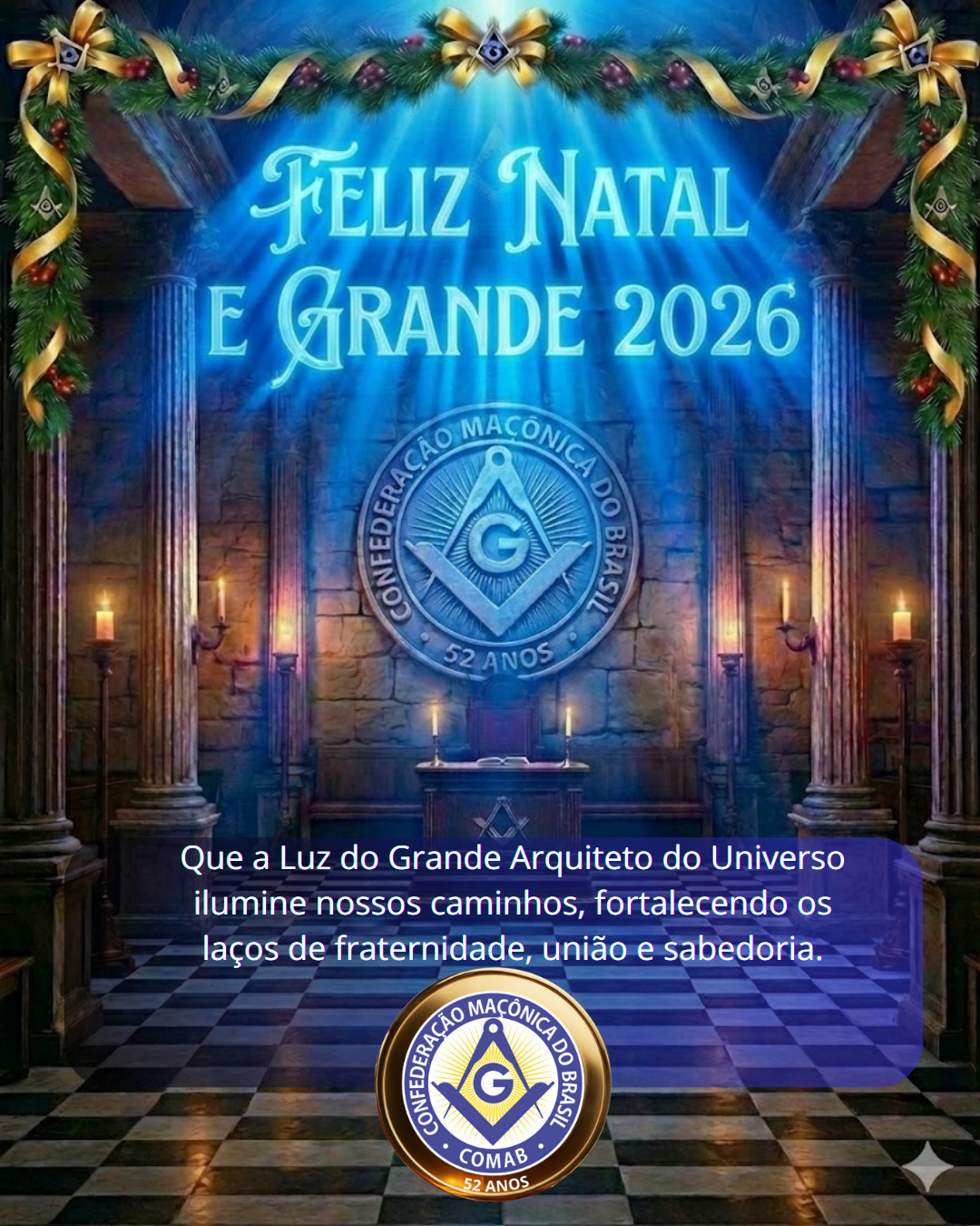 Que o Grande Arquiteto do Universo ilumine cada Irmão, familiares e amigos, cada Oficina e cada Grande Oriente, bem como a toda Maçonaria Universal, conduzindo-nos a um 2026 de harmonia, trabalho justo e elevação espiritual.