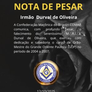 A Confederação Maçônica do Brasil – COMAB manifesta profundo pesar pelo falecimento do Soberano e Sereníssimo M∴R∴I∴ Durval de Oliveira, […]