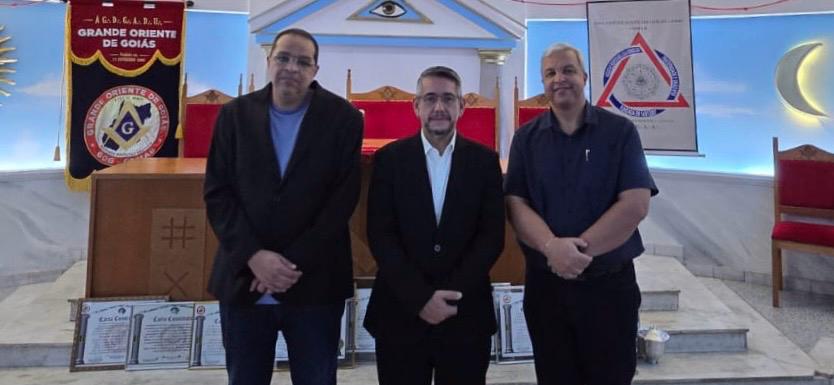 Os Irmãos Cassiano Moreno, Past Grão Mestre do GOBA e atual Secretário Geral da COMAB, e Cristian Flores, Past Grão Mestre do GOP, Past Presidente e atual Secretário de Relações Exteriores da COMAB, integrantes da Comissão Especial de Avaliação do Grande Oriente de Goiás, nomeada pelo Presidente da COMAB, Soberano Irmão Josué Paulo Fernandes, estiveram no último dia 14/11 em Goiânia, onde foram recebidos pelo Sereníssimo Grão Mestre, Irmão João Vicente Neto, e pelo Eminente Grão Mestre Adjunto, Irmão João Wesley.